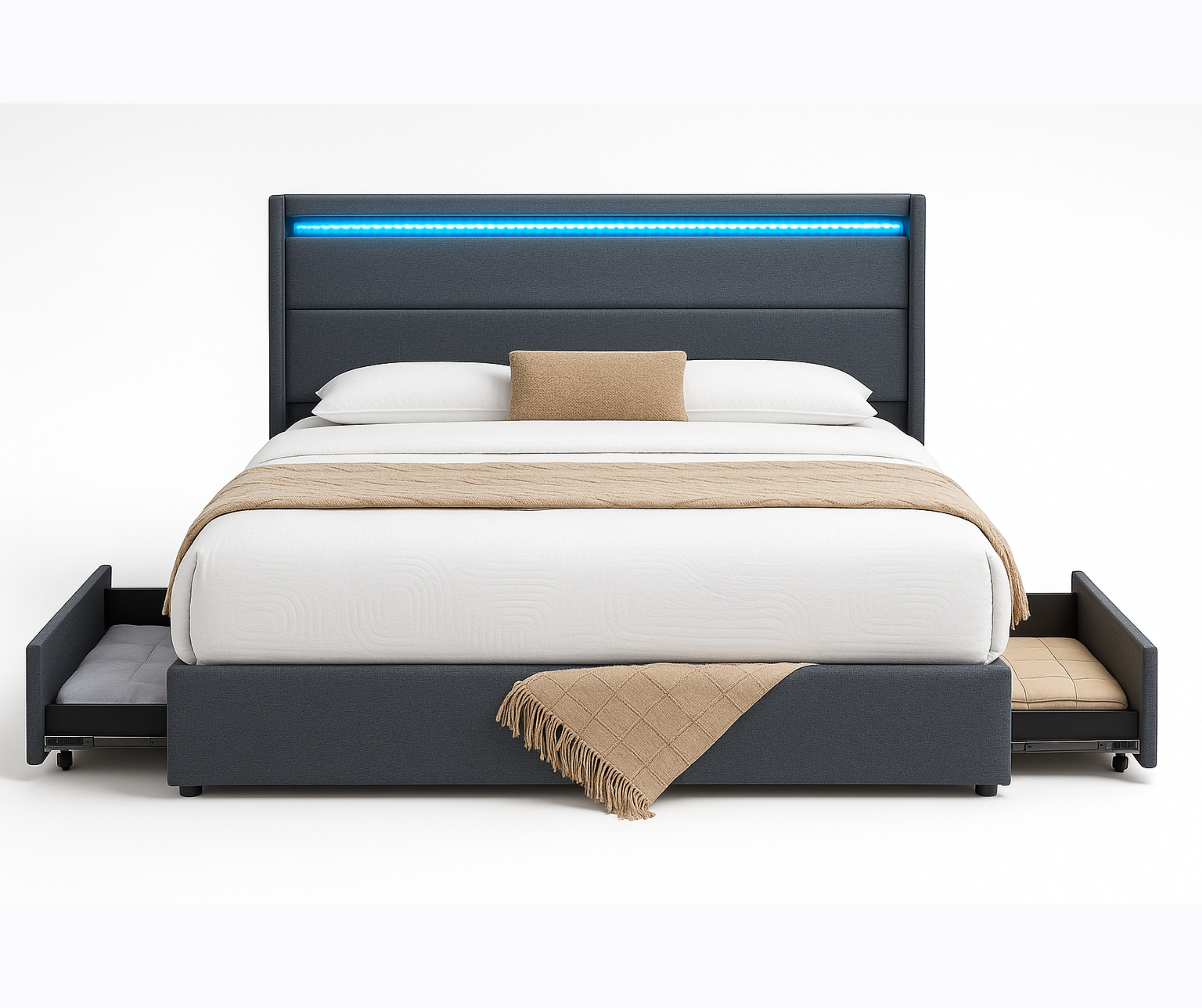 • Modern upholstered bed design • Designed for everyday comfort and support